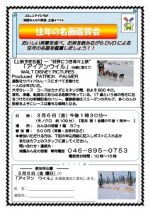 2026年2月8日 / 最終更新日時 : 2026年2月8日 minnanoheya 260306 アイアンウイル 名画鑑賞会チラシ コメントを残す コメントをキャンセルメールアドレスが公開されることはありません。 ※ が付いている欄は必須項目ですコメント ※ 名前 ※ メール ※ サイト 次回のコメントで使用するためブラウザーに自分の名前、メールアドレス、サイトを保存する。